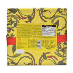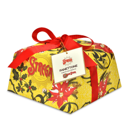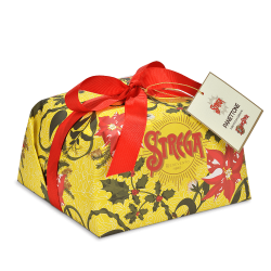 Panettone con uva sultanina e scorze candite di arancia farcito con crema al Liquore Strega.